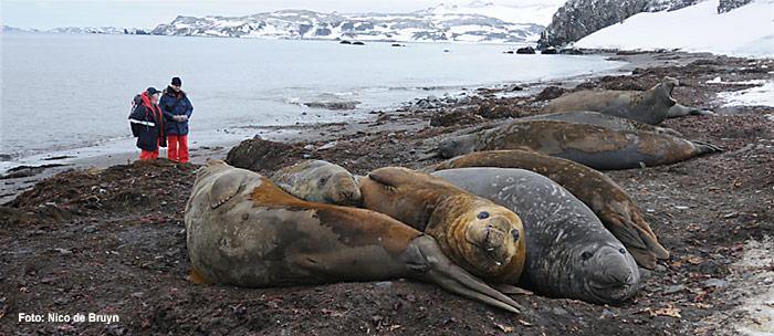 «Wir sind gerade von der Antarktischen Halbinsel zurückgekehrt und stehen noch ganz unter dem Eindruck dieses unglaublichen Erlebnisses, wenn man vor mehreren tief dröhnenden See-Elefantenbullen steht und sich dabei vorstellt, einigen dieser Kolosse nun einen handtellergrossen Satellitensender aufs Fell zu kleben», beschreibt Joachim Plötz eine auch für den erfahrenen Robbenforscher nicht ganz alltägliche Situation. Jedes Jahr von März bis April kommen die Männchen der einzigen Fortpflanzungskolonie des Südlichen See-Elefanten in der Antarktis zur Inselgruppe der South Shetlands, zu der auch King George Island gehört, um hier ihr Fell zu wechseln. Dieses enge Zeitfenster nutzten die Wissenschaftler vom Alfred-Wegener-Institut für Polar- und Meeresforschung in der Helmholtz-Gemeinschaft, um einige Tiere mit Sendern des satellitengestützten Ortungssystems ARGOS auszustatten. Ist der Haarwechsel nach drei Wochen überstanden, gehen die Bullen wieder auf Wanderschaft und kehren erst nach sechs Monaten ans Land zurück, um sich im antarktischen Frühjahr mit den Weibchen zu paaren.
